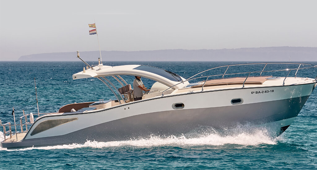 Embarcación de cabina deportiva muy espaciosa con gran bañera. Amplio cuarto de baño y ducha. Ideal para un día de vacaciones.